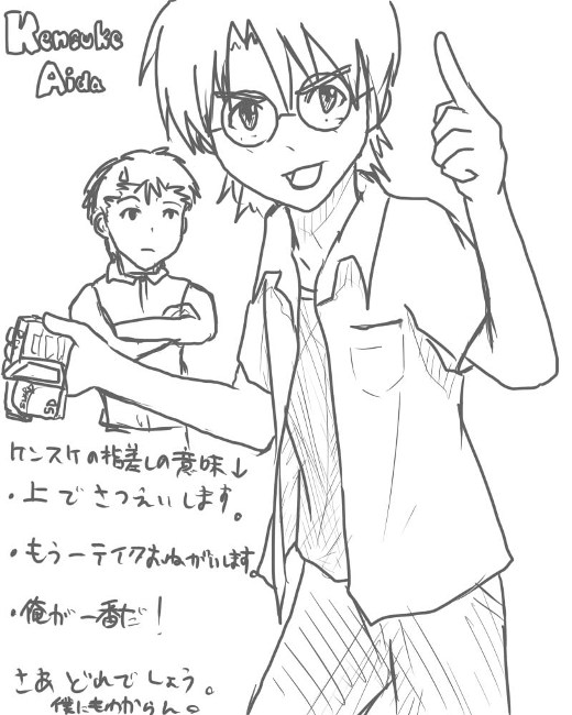 ついでにケンスケも来ました。ブログの絵そのまま載せるのはブログ読んでる人にとってはつまらないですよね。