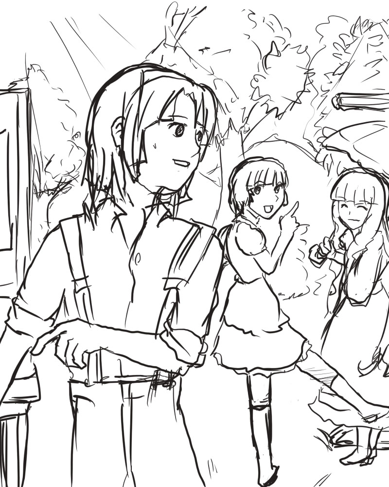 こんかいトップ絵で初めて背景付きなんだけれども、下書き無しの一発書き(構図も無い)で、さらに縮小しながら描いてたので、ものすごく雑です。